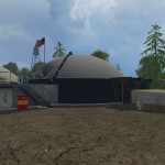 There are two outdoor silos, 1 1 corn grass (the dealer)