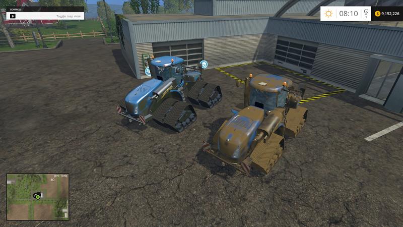 This is my pack of 3 New Holland T9565 tractors. Each T9565 is equipped with Smart Tracs. Two of them are equipped with dual Smart Tracs. One of those is equipped with functional saddle tanks.
