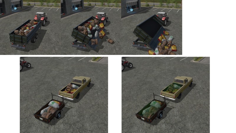 – Buyable fertilizer, seed and pork bags which can be loaded by hand and filled into the fertilizer spreader, tipper or shovel. (Capacity 100 l / sack, so you can still carry them)