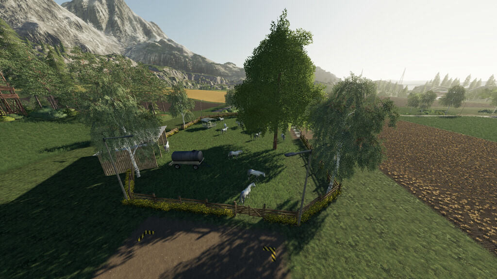 The big stable has a price of 200000$ and a daily maintenance cost of 300$. 16 horses go into the stable. The stable building has been modified, decoration has been added. Lamps have been installed. A straw bale trigger has been added. Animal Pen was prepared.
