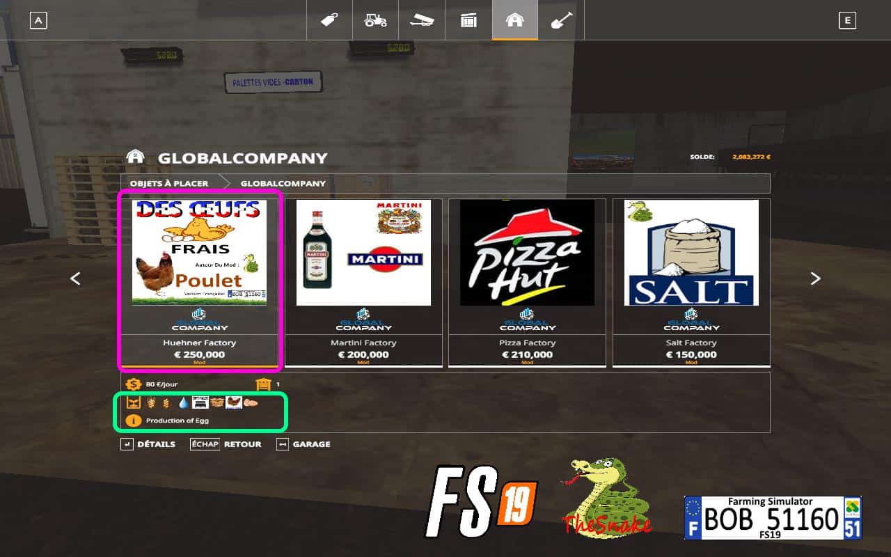 Hello everyone today I present to you, the egg production of TheSnake but with a French version, of course the mod is also in English as in German, but I did not agree that all the mods that are to realize it is not in French, so I made the request To TheSnake, who give me the agreement to translate its mods in French, here is a BIG thank you to you TheSnake and good game to all.