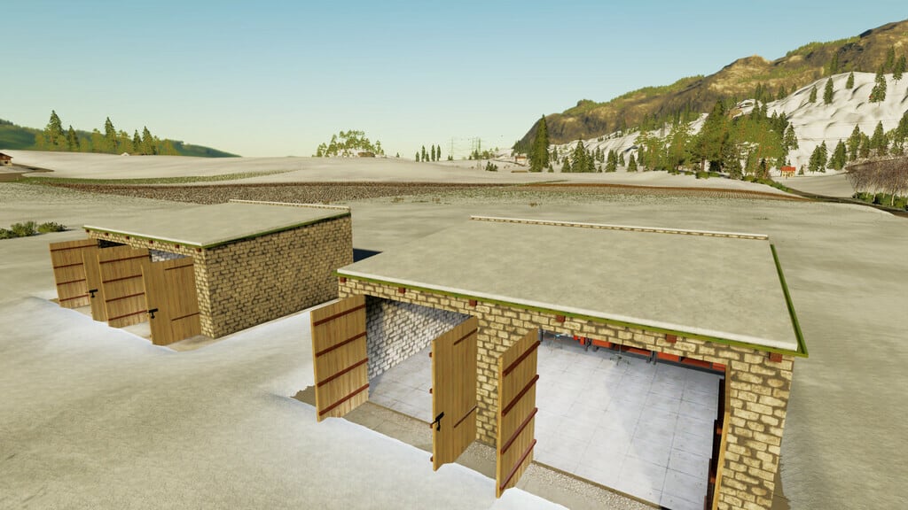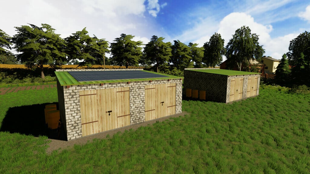 Medium and small garage with solar panels for agricultural machinery. Solar panels give you 150€ to 350€ daily depending on the difficulty of the game. Every garage is Seasons-ready.