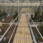 Up to 200 pigs can be stabled in this pigsty, an optimal stable climate is achieved through the sides or skylights and the air conditioning.