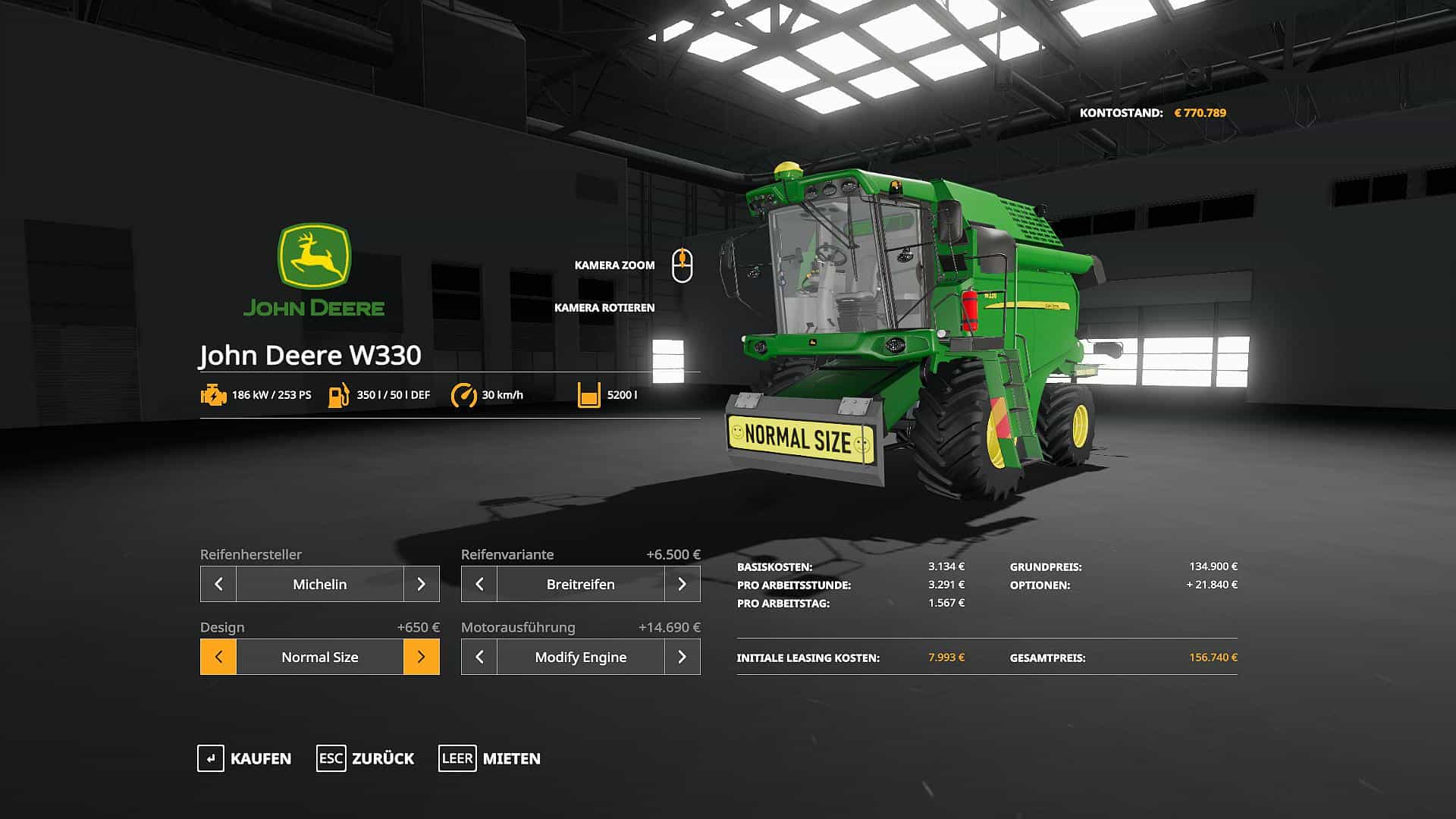 Grain tank capacity: 5200 liters