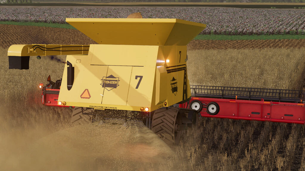 It is equipped with a 400-bushel (14100L) grain tank, and a 3.5-bushel-per-second unloading capacity via a conveyor system.