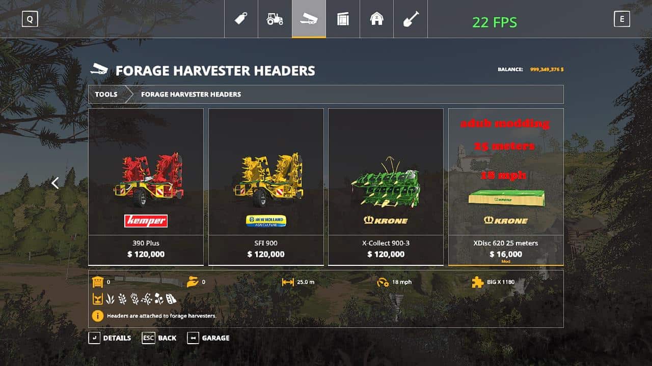 FS19 Krone XDisc 620 25 meters v2.0