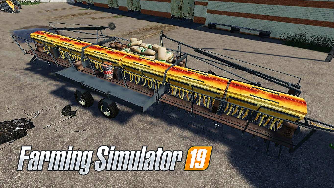 Trailed drill. Volume: 6900 liters. Working width: 9 m, working speed: 14 km / h, necessary tractor power: 90 l / s. Working / transport position, open the lid of the hopper, washable.