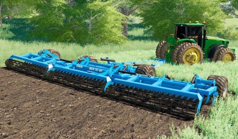 Kinze Mach Till 401 disc tillage tool. Price: 89,000. Working width: 12 meters. Work speed: 9 mph / 15 kph. Required power: 500 HP. Modder: KMN Modding. This mod has some weight to it. That’s why you need a tractor that can produce a lot of power. And you’ll find this excellent tool under the FS19 Subsoiler category. That means it does both plowing and cultivating in one go.