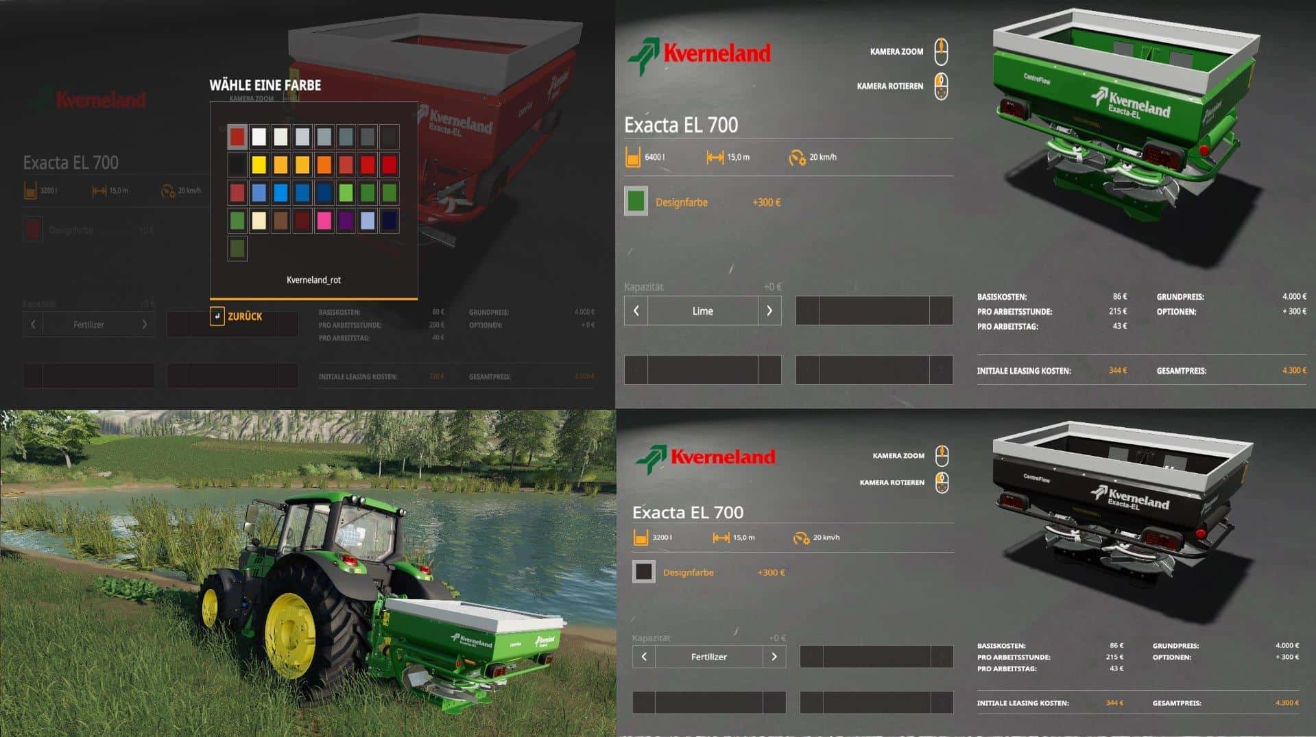 Have the Kverneland Exacta EL 700 times rebuilt something. Added to this is the Kalk function with a capacity of 6400L, due to the high consumption. It is also possible to choose the fertilizer function in the shop, which has remained at 3200L on the standard volume. If you want to color your spreader in tractor color this can also be done through the color selection in the shop.