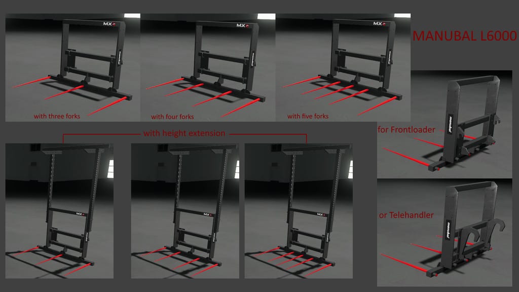 With 3 standard tines and height extension on option, the MANUBAL L6000 provides efficient handling of 3 round bales and 4 rectangular bales.