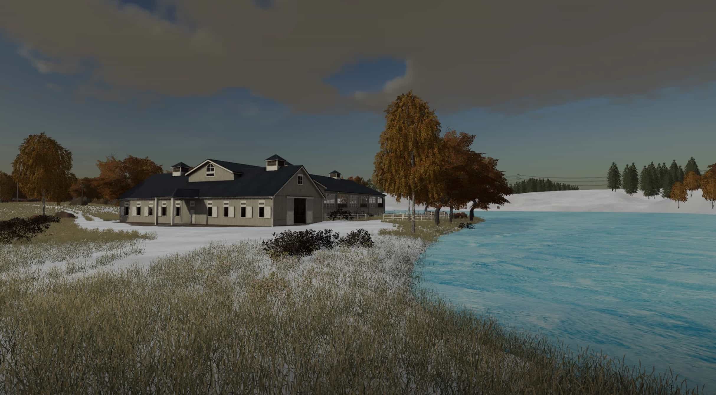 The map was created on real terrain, but due to the limited size, it was significantly reworked, and was also simplified for the sake of performance. – Map size 2048 x 2048; – 50 fields of various sizes; – Standard animals and cultures; – Many points of sale; – Pedestrian and car traffic; – Support for the “Seasons” mod; – For the production to operate, the presence of a “Global Company” is required. Changes v1.0.7.6: – Fixed fish farm; – Fixed contracts for cleaning snow; – Fixed GEO-mod; – Fixed stacks and equipment; – Various fixes and improvements. Unpack the archive! The archive includes: – Map; – Additional climate for the “Seasons” mod. Known problems: For some reason, biogas is not loaded, you need to buy it yourself (the site is allocated for this).