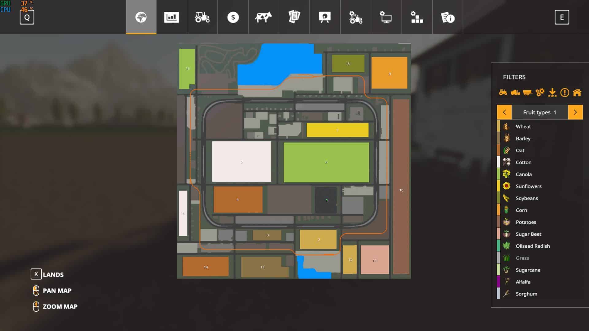 This one was build for ck11 who requested an empty farm area. I have removed all buildings from farm and added a new house, hayloft and Main silo. Compost was added to map, manure and liquid manure sale points fixed, new farmland added at start (both forests and bga’s). Compost added to bga filltype. Cleaned both ports from obstacles. Corrected sorghum, sudangrass, tobacco particles sys. and added compost also. Prices adjusted for new fruits. BHP sale point fixed and other little things I found.
