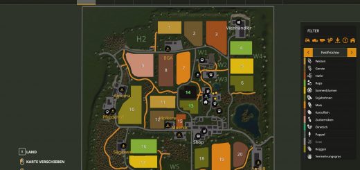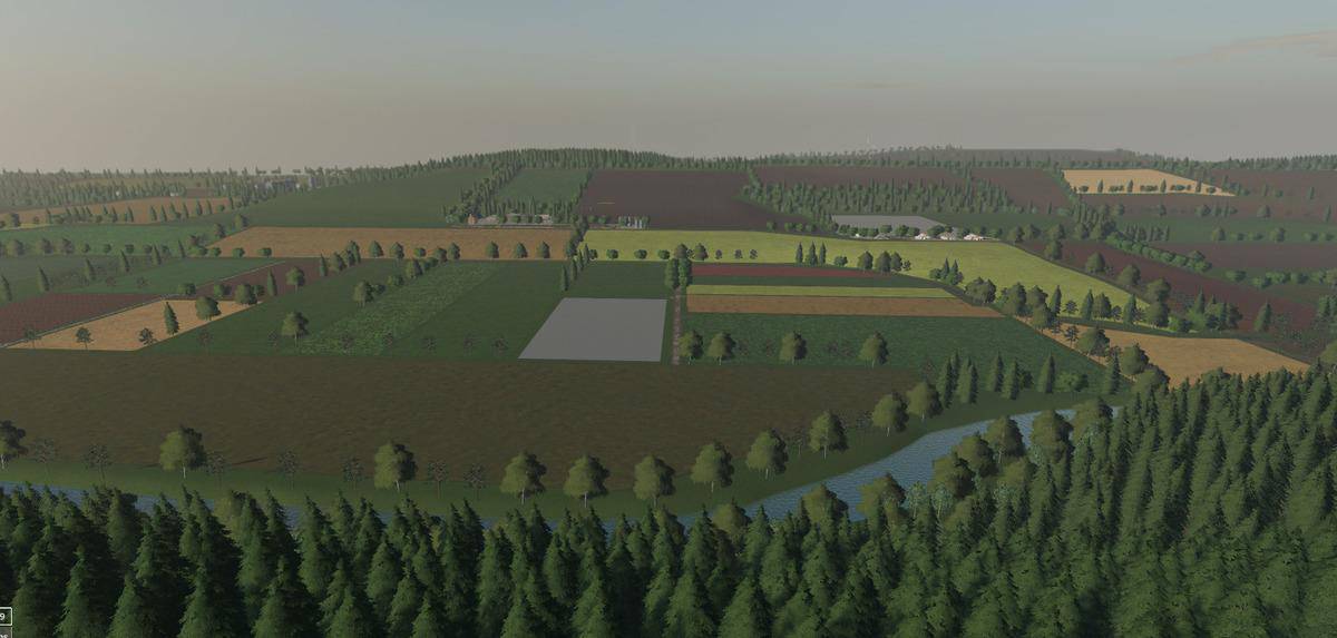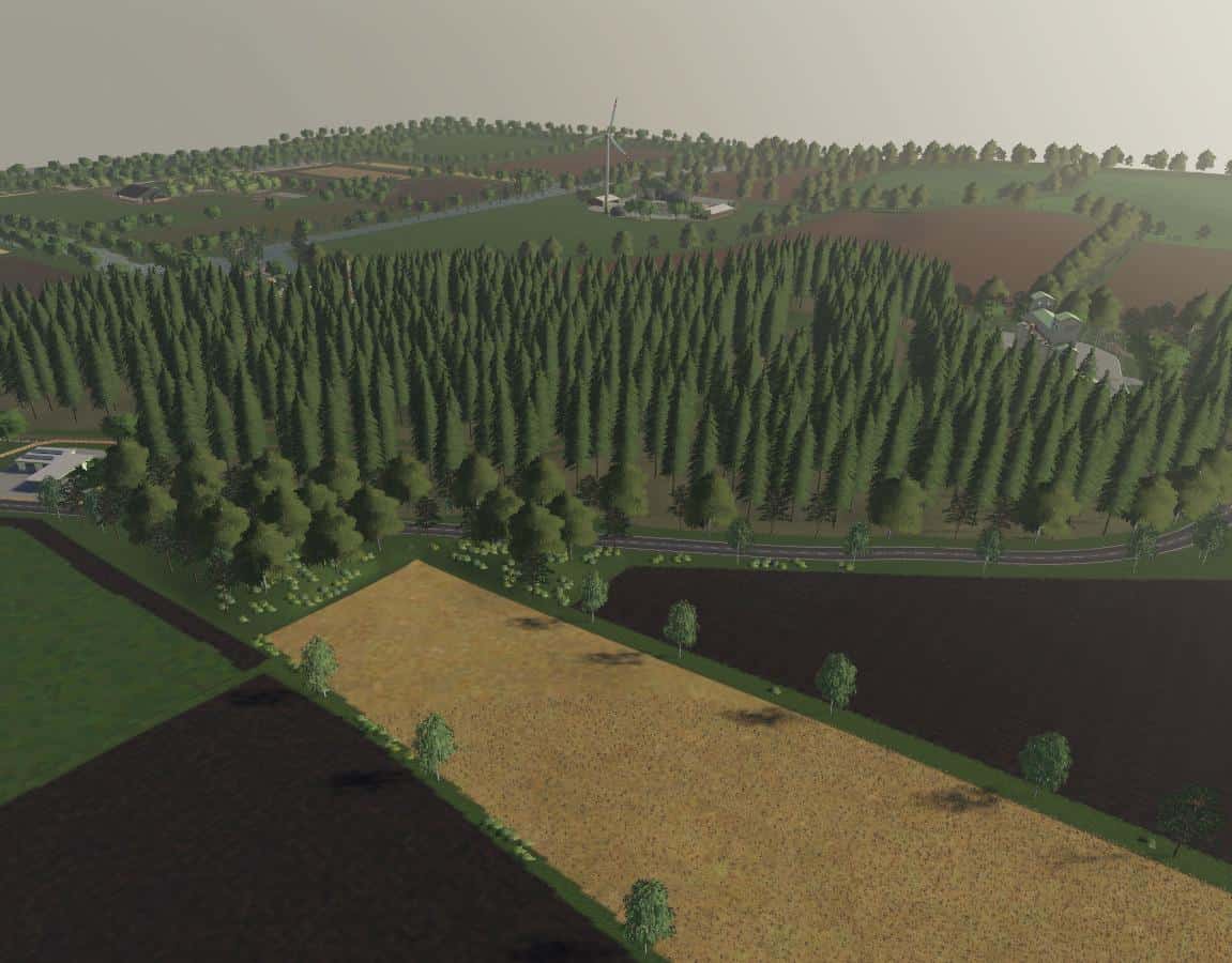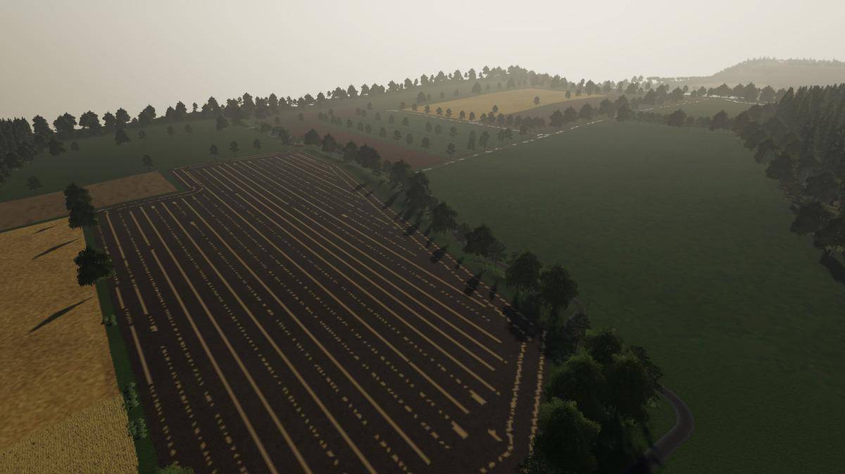 It is a large map with 16.7 square kilometers as usual, it offers 228 arable areas where grassland is already included through the field missions, plus several forest areas, biogas plants and 9 flat farm plates (a total of 255 buyable areas)