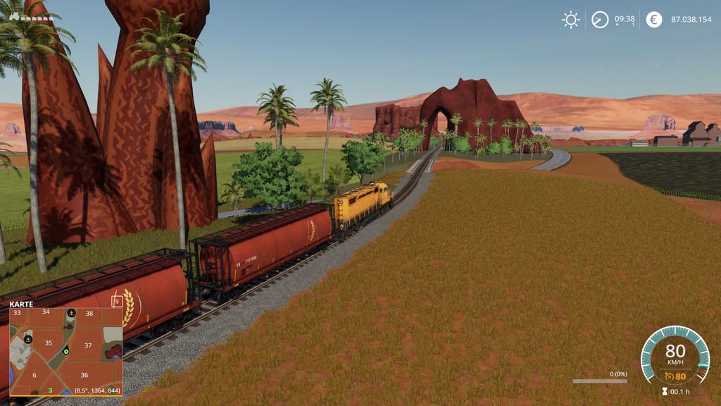 Do farming on large and small fields or cut down trees like a real lumberjack. No matter what you do, three train lines will help you to deal best with the wide area and ensure efficient transport of all goods from the plateau to the coast and back.