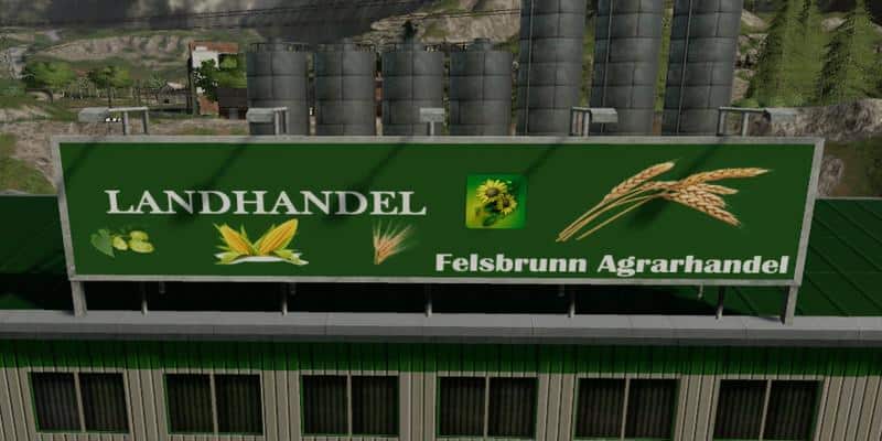 Garden center (liquid manure and manure sale), fuel production (soybeans, sunflowers and rapeseed sales), flour factory (wheat, barley, oats and corn sales), observation tower, WhiskyRum factory (sugar beets, sugarcane and corn sales) and sugar factory (sugar cane and sugar beet sale) installed. As well as many small and bigger changes in the terrain. Furthermore, signs, signposts and many small details are installed. The forest was also enlarged a bit.