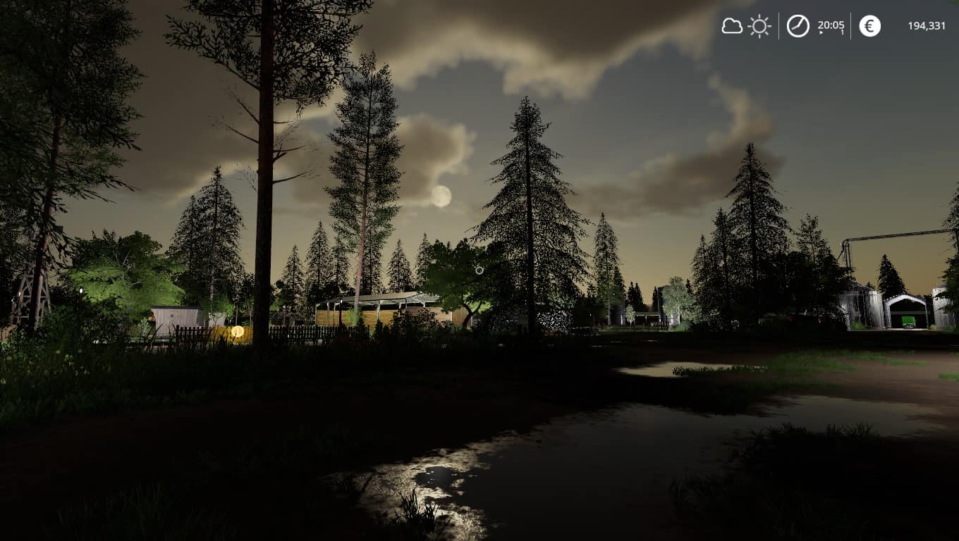 Here’s the new expanded 4x Fenton Forest. The map has a seasons snow mask, the main farm can be customised or even sold off. There’s 3 additional flat empty farm lots for the user to choose if they wish. A huge natural forestry area complete with trails and plenty of fields some square some natural and most field areas can be customised further. There’s plenty of sell points and also 2 remote supply points one at Fenton Mill and the other at Riverside Mill. The map comes with all of its own placeables which can be found in the store. No productions are installed and I have stuck with the fruits Giants chose so no multifruit either. The map was designed to run on high end PC’s and so for it to look and play as it was intended you will need a minimum of a Nvidia 980ti graphics card with LOD set to 200% in the advanced game graphics settings.. The map will play on lower spec systems but may not look or play the same. Use the place anywhere mod or Global scripts extended placeable when using the maps or any placeable. The maps own placeables are designed for flat land only and will not deform the land or alter the foliage. The farm silo has a huge capacity and can hold many things and on the cow pen side you can purchase supplies as well.