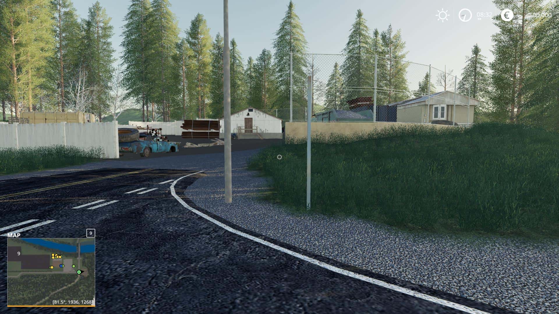 This map is a virtual creation and is ‘seasons’ ready. There is a Geo. that can, be played with the map. There is plenty of space for animals and new fields. Very steep roadway hills. Alfalfa crop added