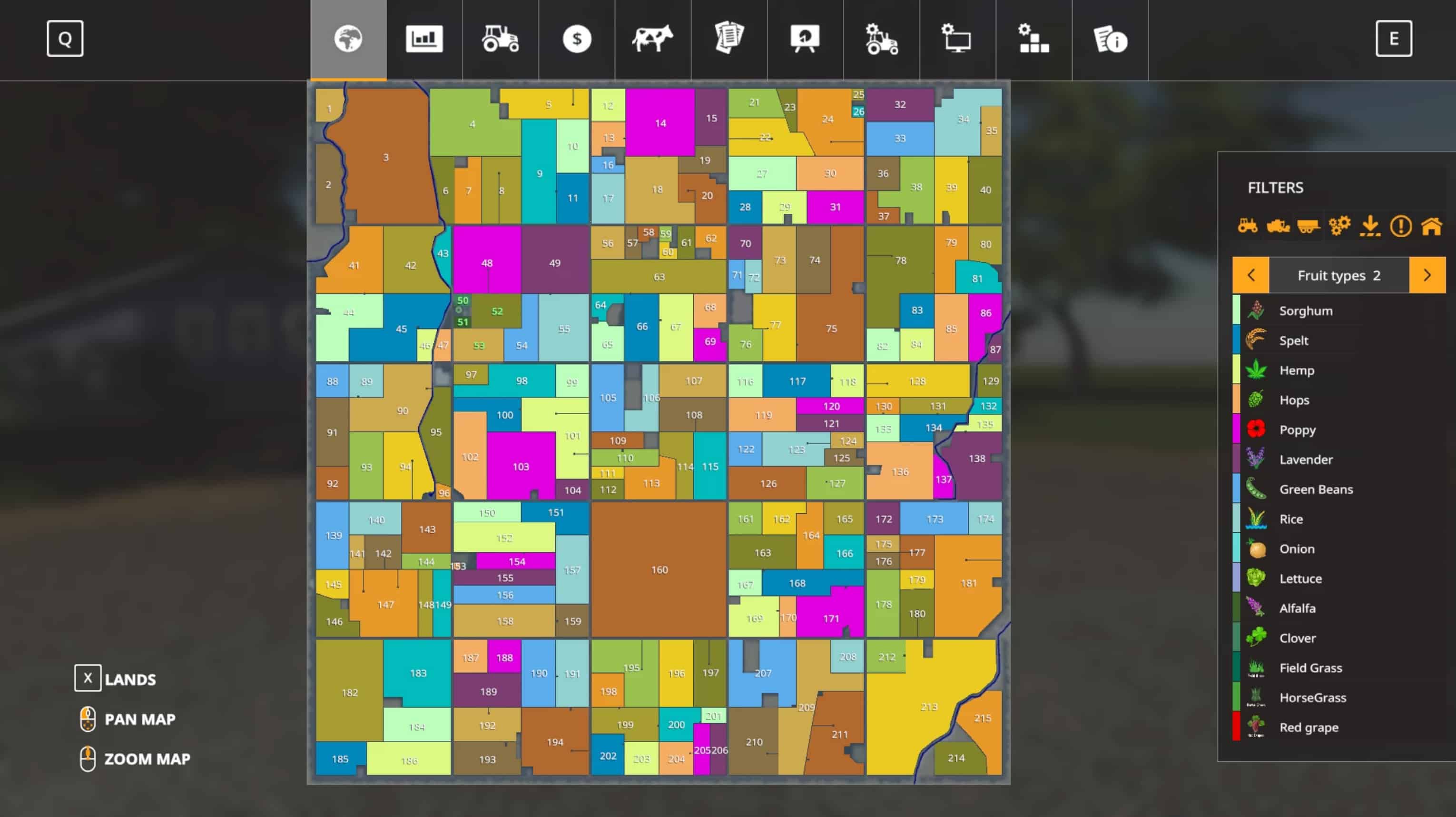 This 16x (8km) map is loosely based on the farms near Bad Axe Michigan. The area has been altered slightly to make room for more sell points and better forestry. There are 18 additional fruits on this map but no cotton or sugarcane to make it more realistic. There are 13 sell points plus the sawmill for selling your products. This map requires Global Company and Global Company Add on Icons to work properly. The map is Maize Plus ready but no seasons or precision farming. There is a small starting farm and many flat areas for your own creations. There are 215 fields ranging from small to very large. This is my first map and I hope everyone enjoys it