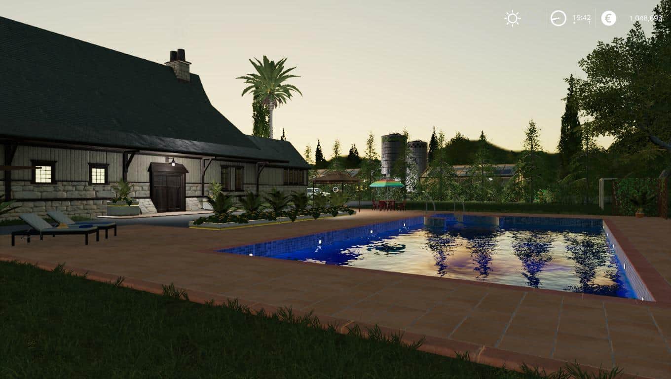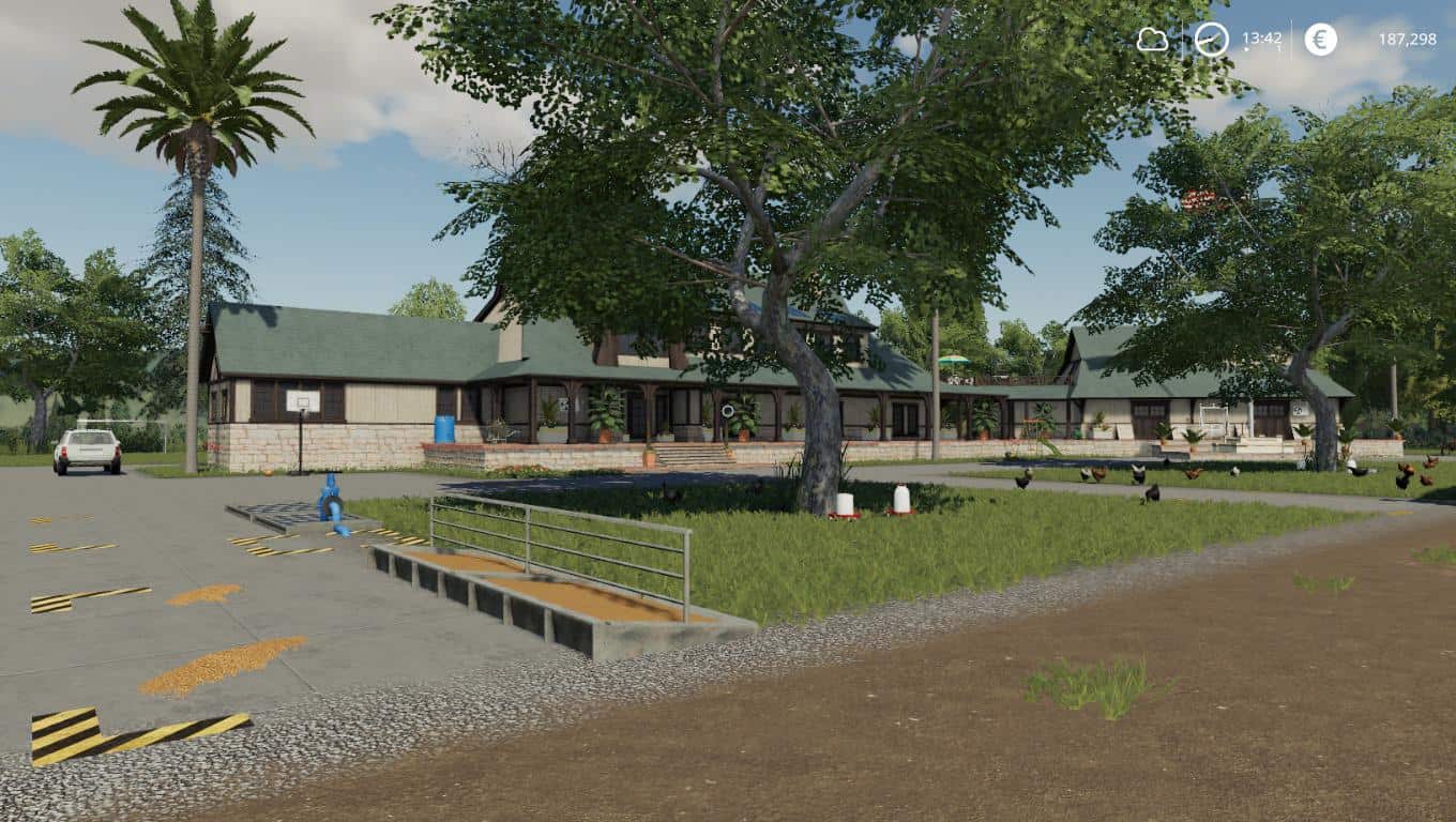 The map features one farm with vehicle reset point, sleep trigger, all in game animals in custom pens complete with the Animal Pen Extension APE. The APE mod file is not included and must be downloaded separately from its source. The farm has a large capacity silo, silage clamp, manure store, workshop, diesel supply, vehicle sheds, barn sales, wool sales and farm supply point. You have 5 owned fields 4 planted ready for harvest and 1 grass. The map is seasons ready with snow mask and custom textures. AI friendly with large grass areas at field ends and the BGA has 6 clamps, sunken tip points and fast processing. The map features compost but will require a relevant global company composting plant mod like the one I released and the addition of the Global Company mod script not supplied and must be download from source and a minimum version of V1.1.0.0 is required for my mod pack. The map has a smaller forestry area and several good sized placeable areas. Diesel can be sold at both gas stations, water can be sold at the animal suppliers. Eggs can be sold at the dairy and supermarket. Water can be filled for free from the farms wind pump, horses water trough and dairy water tower.