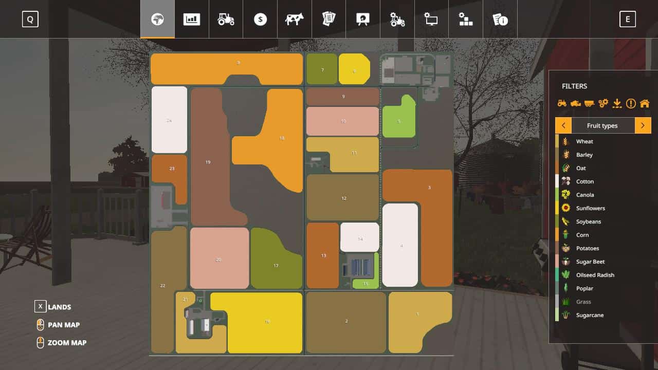 I looked at comments left on previous maps and tried to make do on them. I was told the fields were too square so I made them odd shaped. There are some square/rectangular fields still but with rounded edges. You will need to use the courseplay mod for headlands in these fields or have some fun planting the fields yourself.