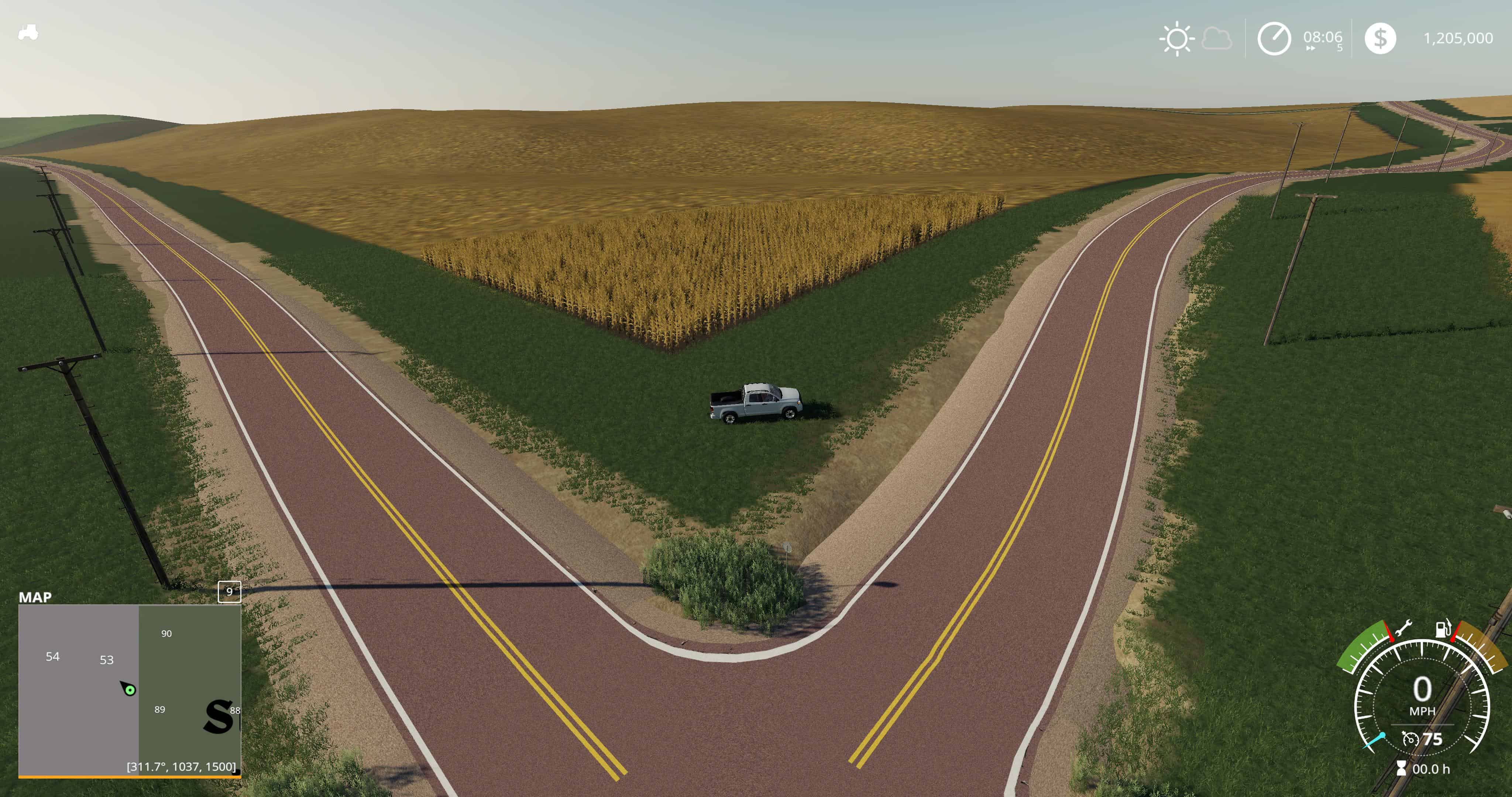 The river valley is full of fields that are smooth and level, but no homes, and the higher land is very hilly and will require high horsepower equipment to handle the hills.