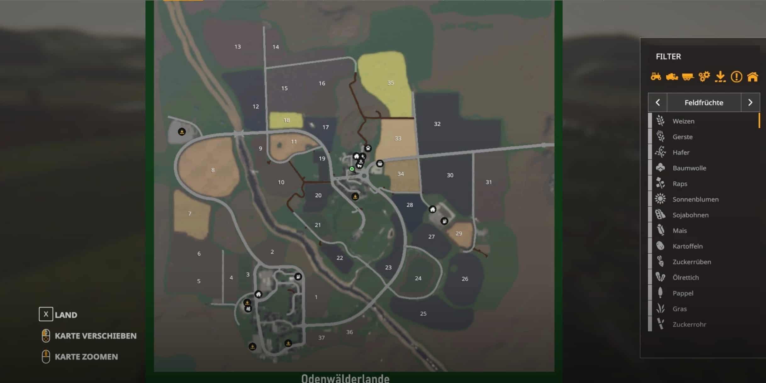 The map is adapted to the Odenwald, therefore not a real replica. It is for people who prefer to play with small to medium-sized tractors. 4 courtyards, 1 shop, 1 BGA, 1 carpenter (wood sales) and 3 sales points can be found on the map. This is my first “Odenwälderlande” map that I have built. It is a single ticket WITHOUT production, Seasons and Mais +. The plan is to convert the card to the LS22. Therefore no seasons yet. Hope you like it, I’ve put a lot of effort and hope I can make some of you happy with the card.