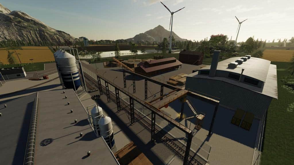 The map consists of 41 areas, 32 arable fields and 2 forest fields. You can sell crops in 3 stationary purchases and train buying. The train is an important element of the map because it is integrated into the farm. Advantages of the map: