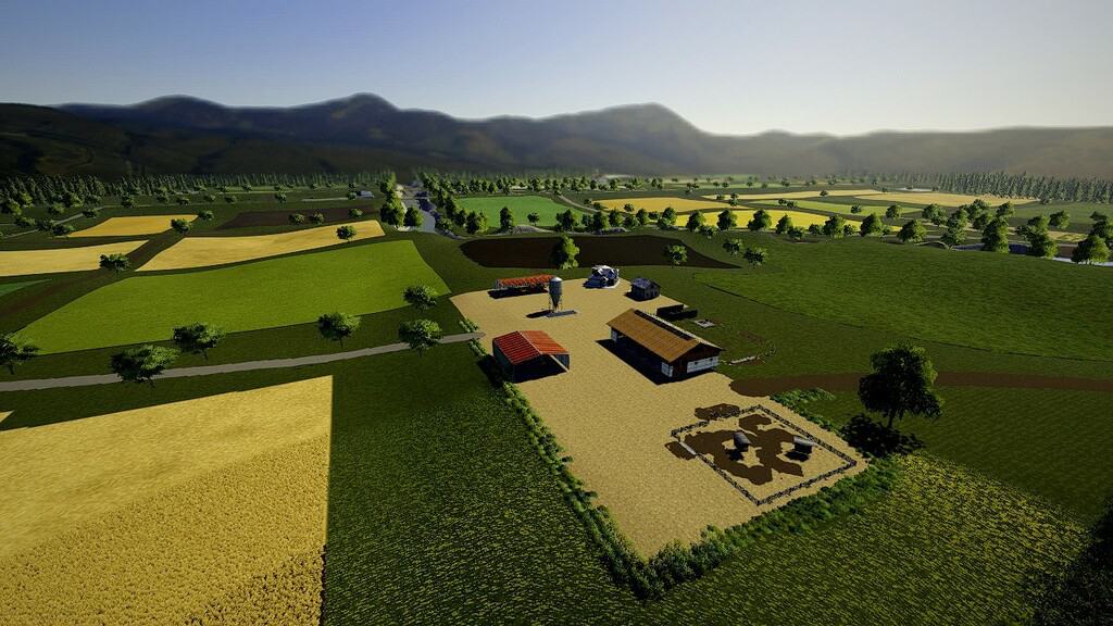 Map has 34 fields of varying size, 5 farms, 2 space for placeables, a BGA and few forest areas.