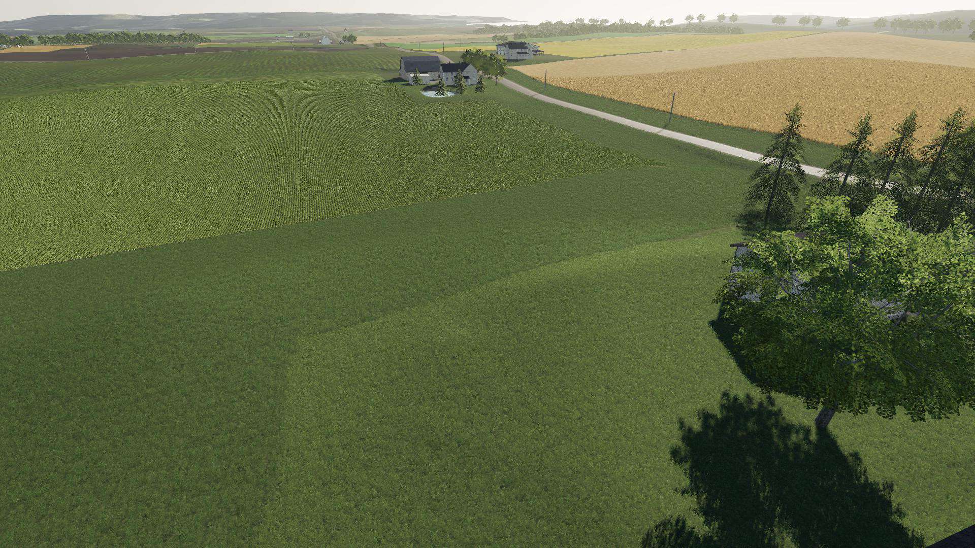 Realistic map based on google maps and lidar. It is scaled down 33% i thought to make fields more manageable (its a game) but then i went and combined some anyway.