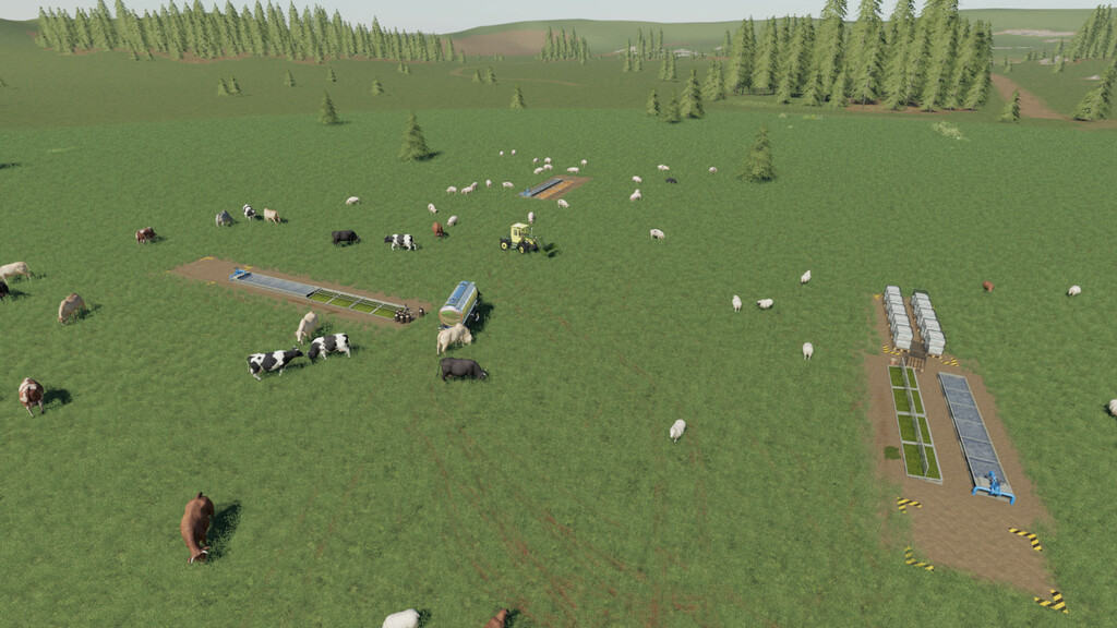 Sometimes you just want animals in a field! By request, open pastures without buildings. Just the basics. This pack includes a pasture for cows, sheep, and pigs. Cows produce milk, and sheep produce wool. There is no straw / slurry / manure on these pastures.