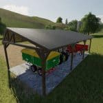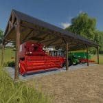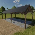 Wooden placeable shelter with dimensions of 18mx8mx4m for medium-sized farms.