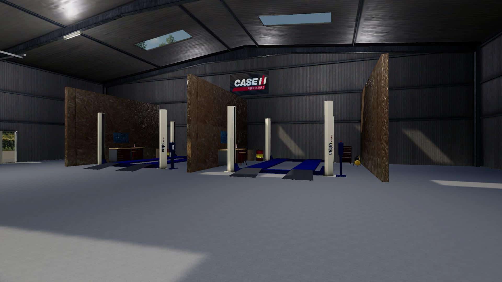 This is the machine shop from Lone Oak in 17 we made place-able. The lifts still keep vehicles in the air, we can’t figure them out. But we created a collision above that knocks the vehicle back down when lowered as a work around.