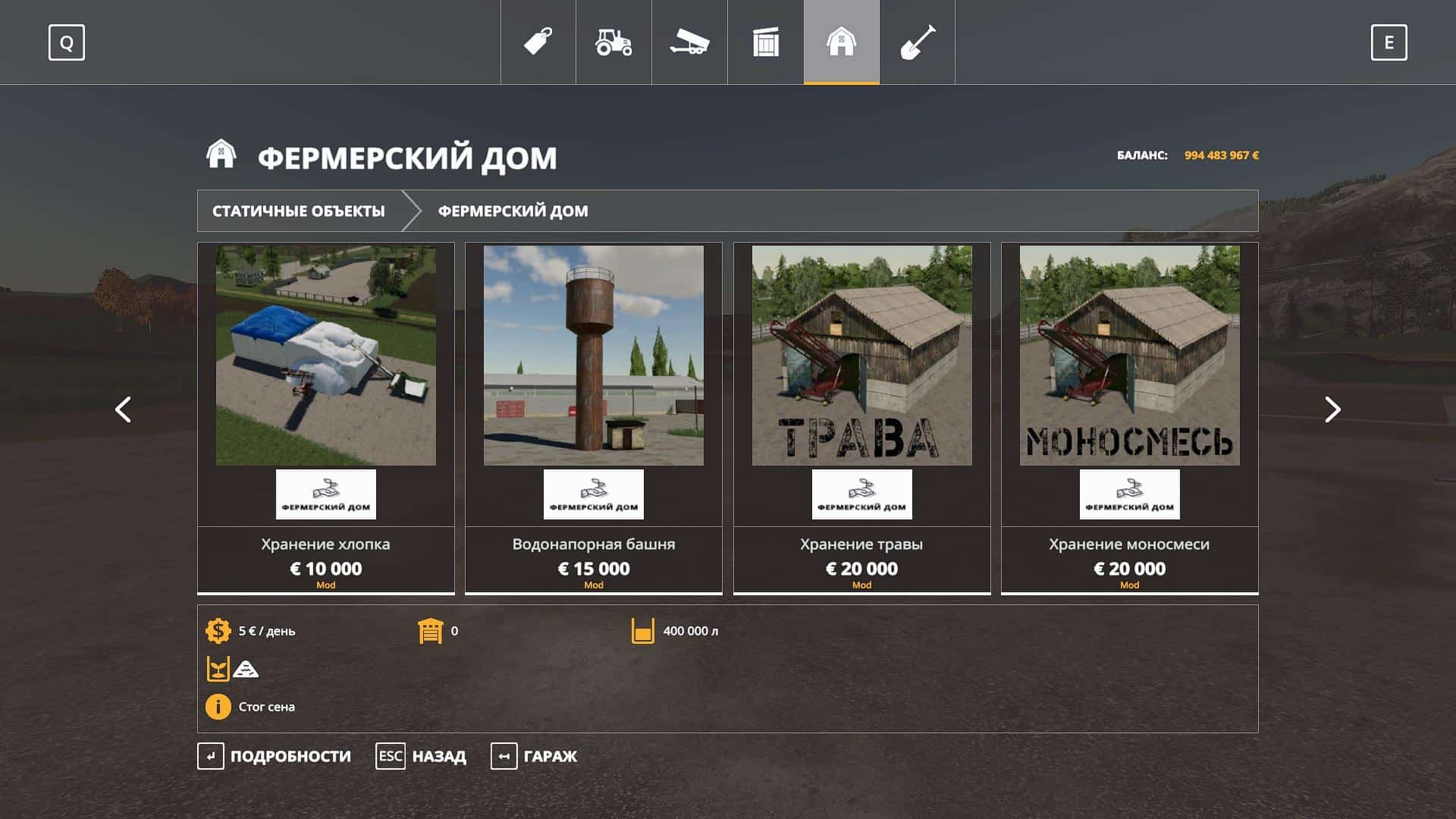 Pack add. objects for cards. The pack includes: – Stacks of hay, straw; – Storage of feed for pigs, cows, grass; – Cotton storage (works with XK-3 pack); – Water storage; – Water tower; – Add. point of sale of cotton and wool; – BHA; – Lime; – Seeds; – Dry fertilizer; – Point of sale of fuel.