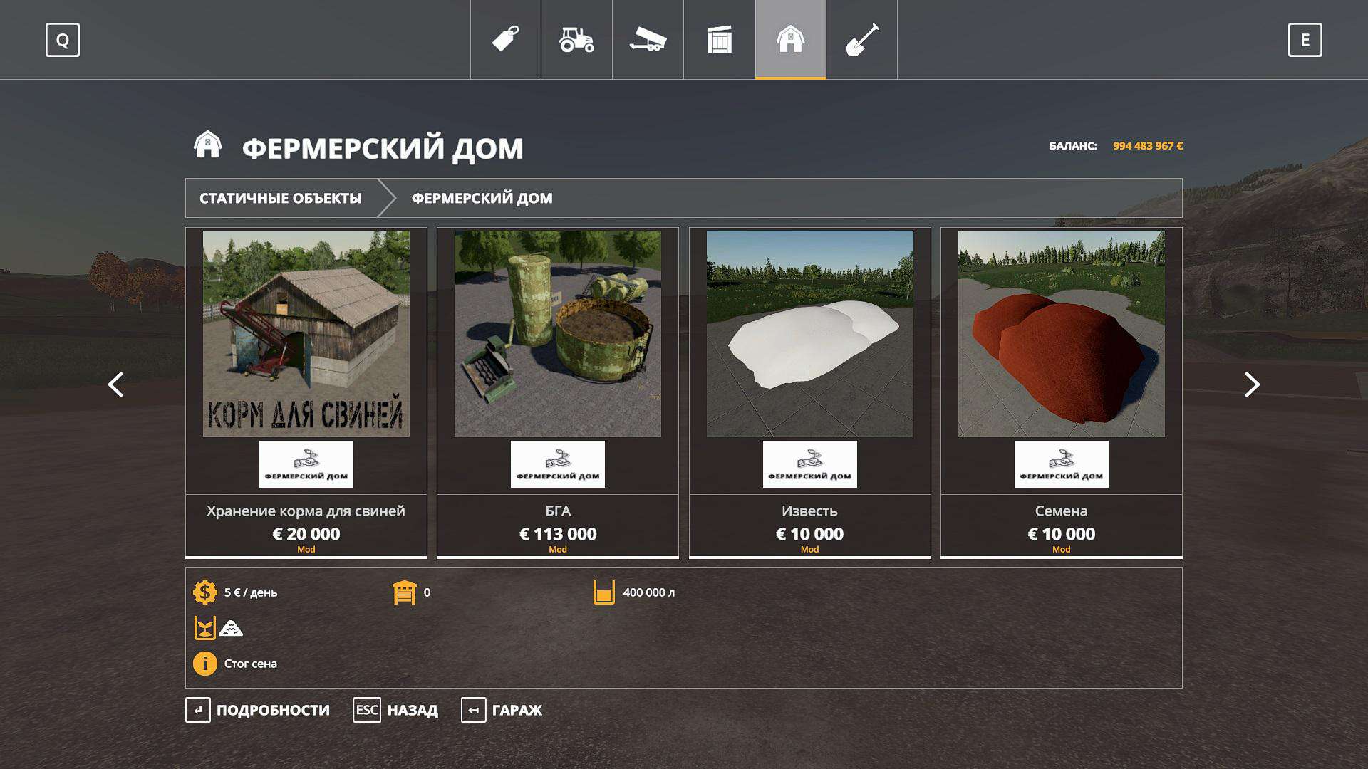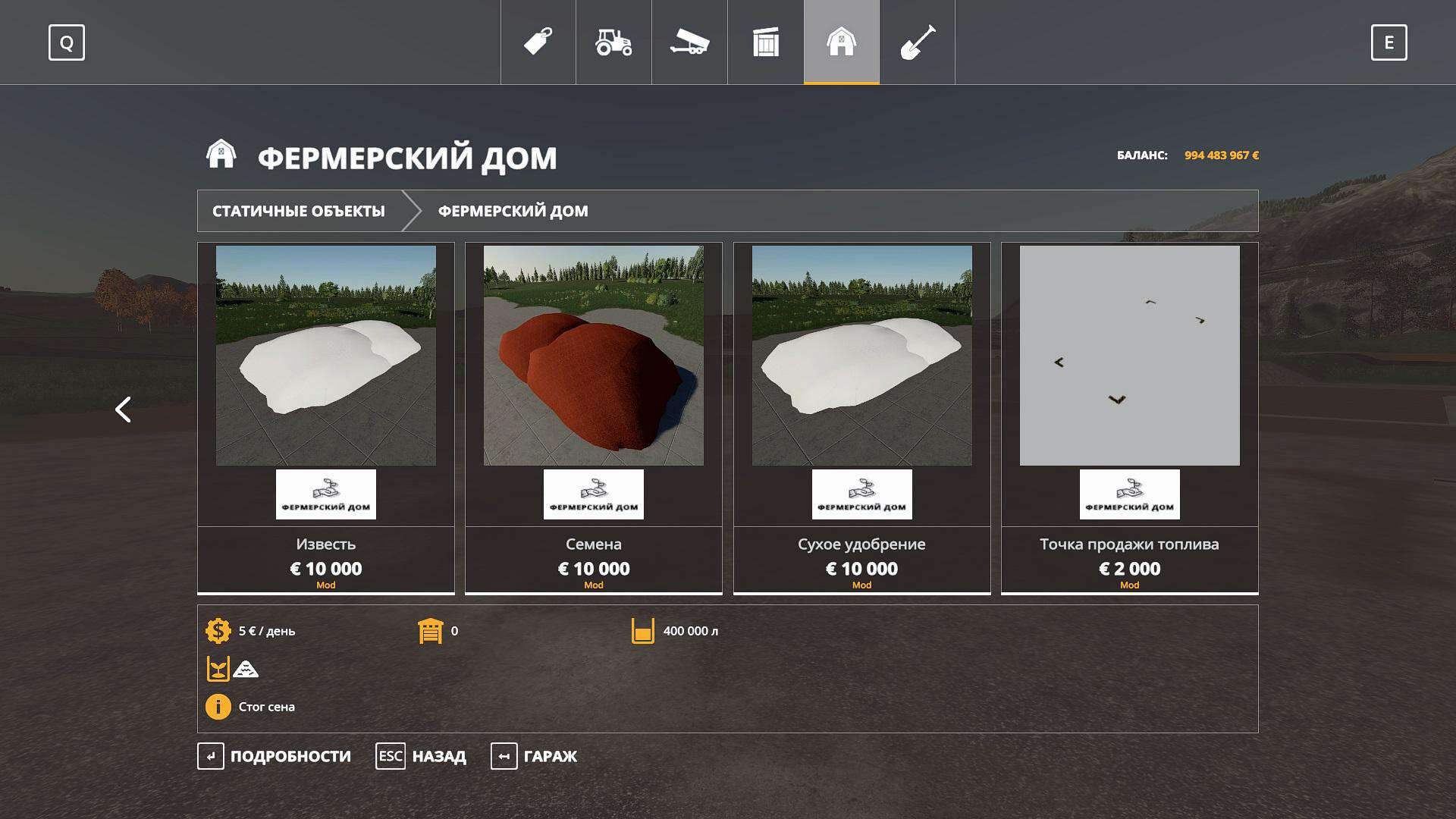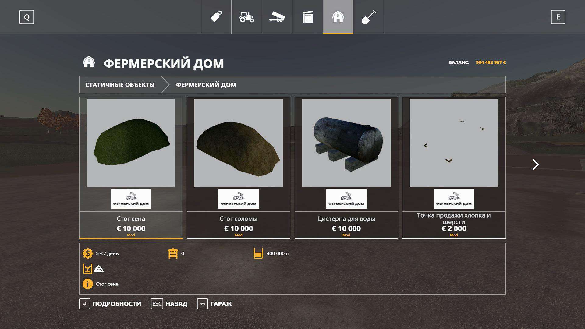 Pack add. objects for cards. The pack includes: – Stacks of hay, straw; – Storage of feed for pigs, cows, grass; – Cotton storage (works with XK-3 pack); – Water storage; – Water tower; – Add. point of sale of cotton and wool; – BHA; – Lime; – Seeds; – Dry fertilizer; – Point of sale of fuel.