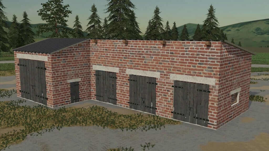Placeable Renewed Red Brick Garage and hall for storing your vehicles and crops.