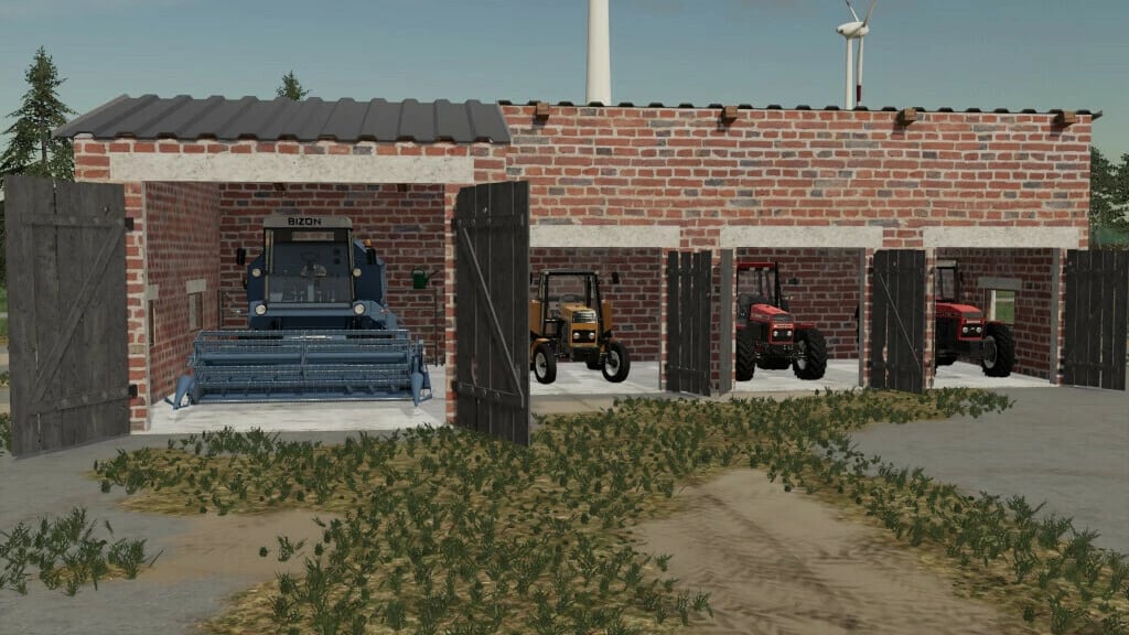 Placeable Renewed Red Brick Garage and hall for storing your vehicles and crops.