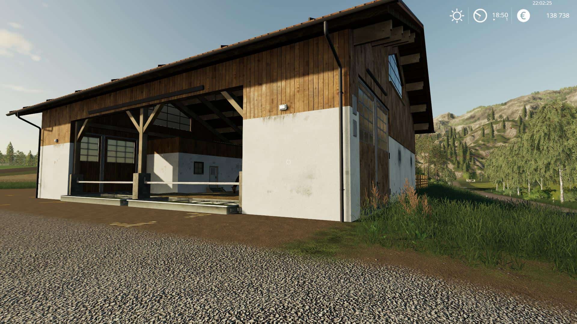 12 Horses, Barn (from Thomas, LS19 Gebaude Pack v1.1.0) for Straw and Hay bales. Feeding, straw and wather from front. Small clear area. Night Lights and litlle bit deco.