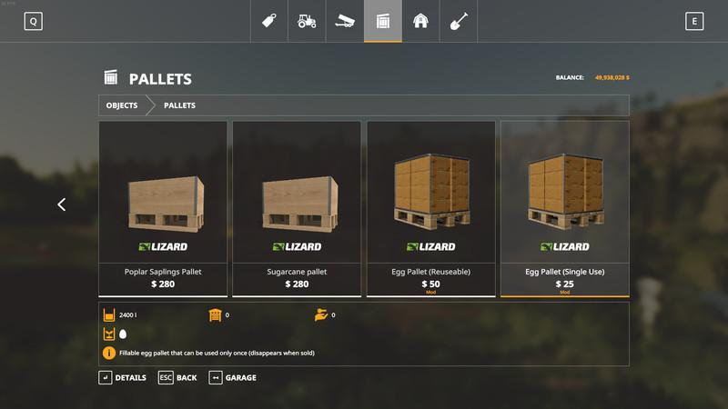 Fillable egg pallet. View this mod as a “trailer” and it’s fill type egg.