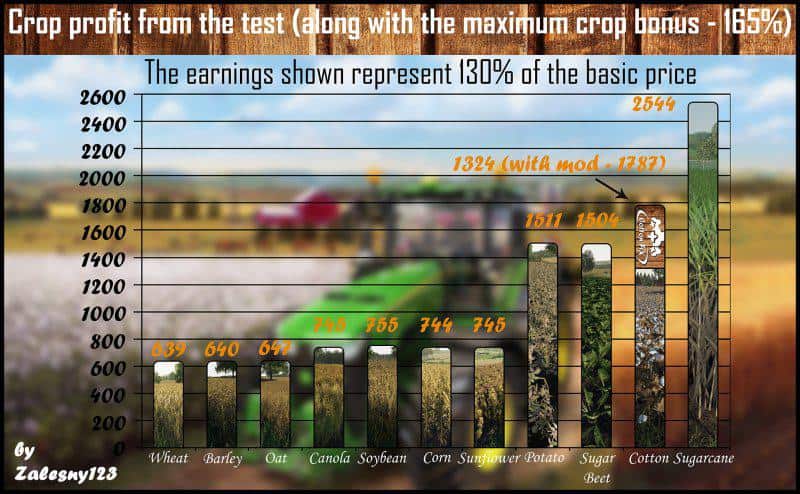 In this mod you get 1.35x cotton at harvest which increases profits and its efficiency.