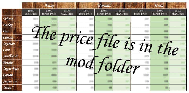 – Crop prices at each level of difficulty.