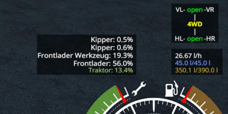 If the mod “keyboardSteer” from Mogli is detected, some HUD elements are moved a bit to avoid overlapping. Press “KeyPad /” to reset their positions. (version 1.4.0.0+ required)