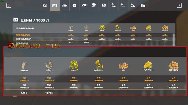 Changes standard crop icons to icons with names in Russian. In the new version: Colored icons with the names of crops and goods in Russian: wheat, barley, canola, corn, sunflower, cotton, reed, grass, hay, chopped straw, mono-mixture, pig feed, wood chips, potatoes, beets, onions , carrots, rye, oats, triticale, millet, spelled, sorghum, poppy, rice, cabbage, salad, red cabbage, flour, diesel (fuel), butter, cheese, soy, silo, clover, compost, manure, liquid manure, UVT milk, digestat, fertilizers, liquid fertilizers, seeds, eggs, hops, tobacco, lime, alfalfa, milk, poplar, sediment (sludge), wool, schnapps, rum, yogurt, sugar, asparagus, plum, cherry, beer, bread, cake, mashed potatoes, washed potatoes, malt, confectionery poppy seeds, tomatoes, cigarettes, carrot juice, holy water, frankincense, sail, cabbage salad, ketchup, peeled grain, grain waste, apples, pears, gravel, beet pulp, bran, soil, sand, timber, pallets, vegetable oil, asparagus, cardboard, paper, beer in kegs, bottled beer, boxes, cement, earth, gravel, fish, cornmeal, flour wheat, asphalt, stone, biomass, coal, duck, goats, piglets, calves, nitrogen, phosphorus, potassium, nitrate, red pepper, dressing, beef, pork, lamb, chicken, lettuce seedling, tree seedling, chicken, cow, pigs , sheep, sheep’s milk, coffee, hemp, mustard, logs, cotton bale, bananas, coconut, strawberries, raspberries, watermelon, pumpkin, cocoa, cranberries, grapes, peanuts, orange, lavender, barrels, cauliflower cabbage, ore, oil, salt, carbonate (chemical), gold, bees, honey, table mustard, mayonnaise, wax .. As new crops and goods come out, icons will be added.