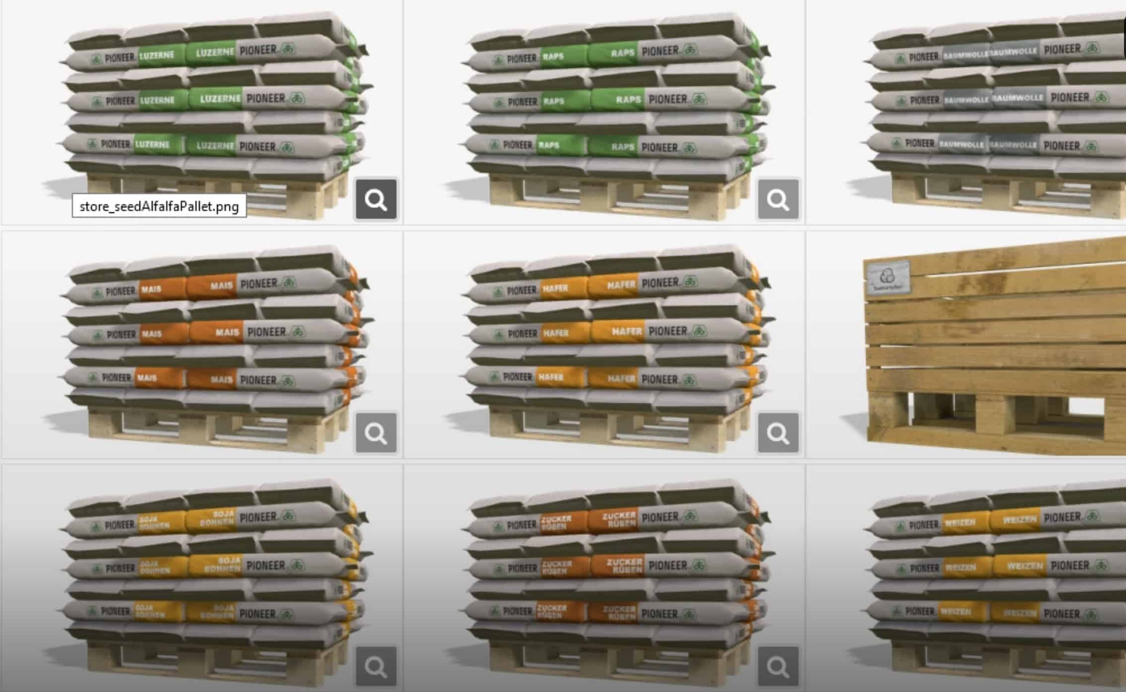 Should you not be able to sow a fruit on your map, then this palette is not in the shop either. If you fill a front tank or seeder with one of these seed pallets, then you can only sow the fruit for which the pallet was intended. Switching through the fruits then no longer works. But if you fill in the standard seeds, you can switch between the fruits as usual. If the standard seeds are emptied, the BigBag no longer comes, but the Pioneer pallet.