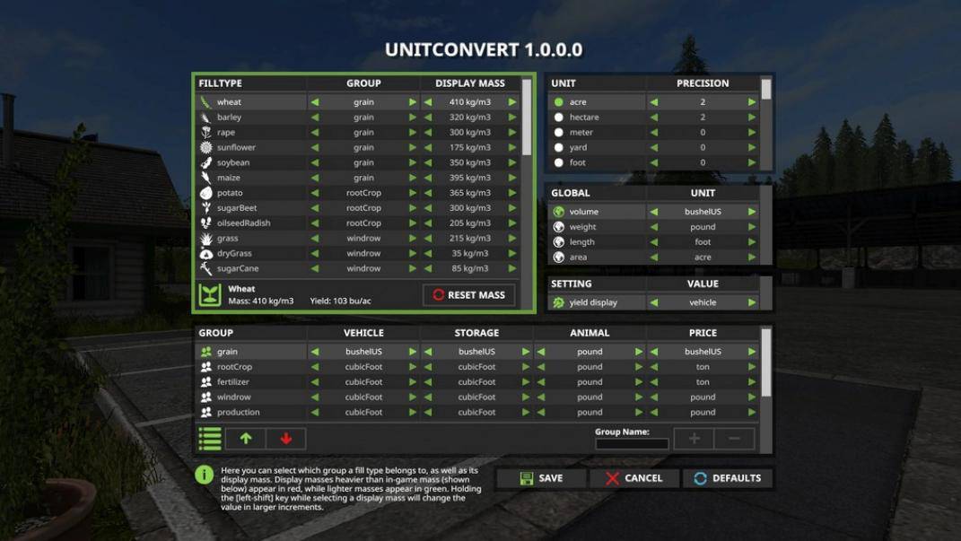 Allows Farming Simulator 19 to display different units of measurement
