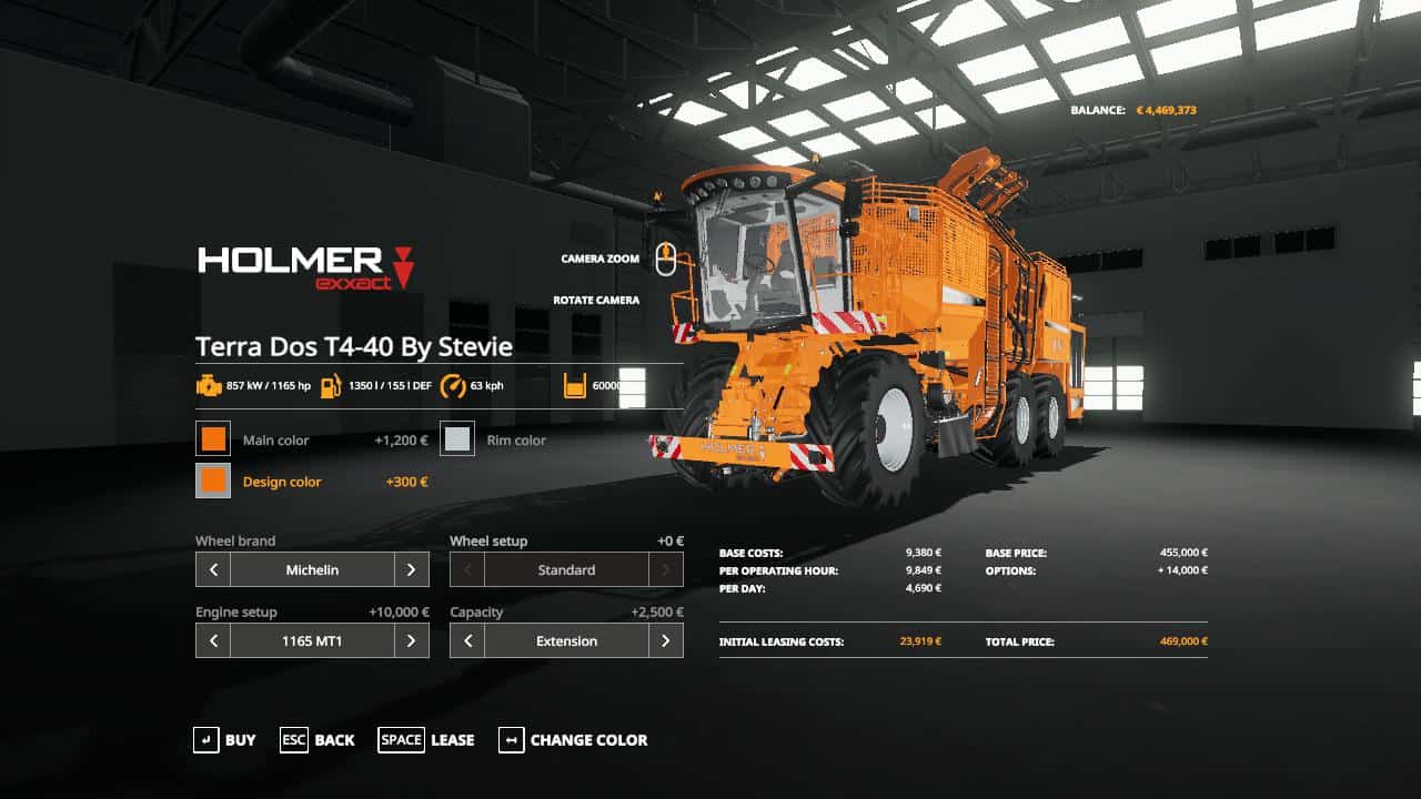 For sugar beet, potato and sugar cane, color choices added to the machines and headers. The Terra Felis 3 has the bulk fill type, faster overloading. Both have higher capacities, cheaper store prices, faster road speed and operating speed.