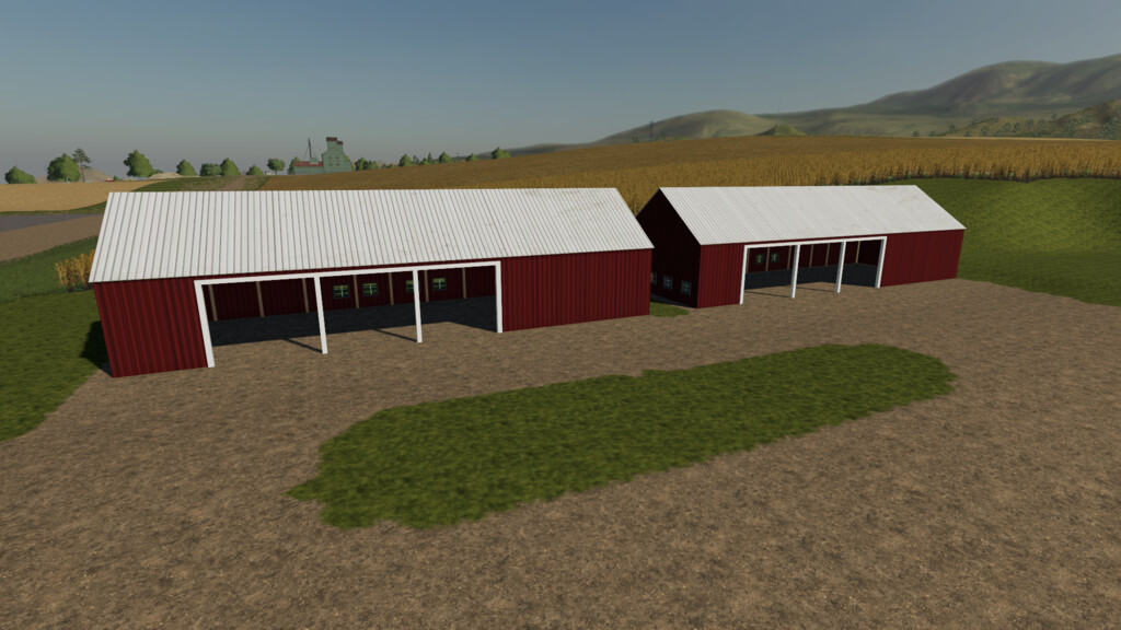 Pack Contents: Lone Oak Pig Husbandry, Large Red Barn, and Storage Shed