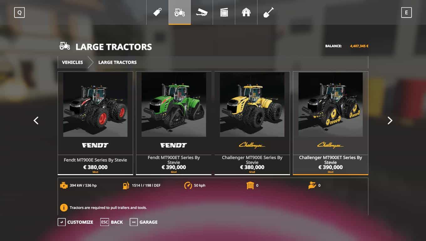 Fendt 900, 1000, 1000F, 300, 700, 900 BB, MT1100, 500, MT900, MT700, MT Challenger versions as well and the Steyr Profi and CVT.