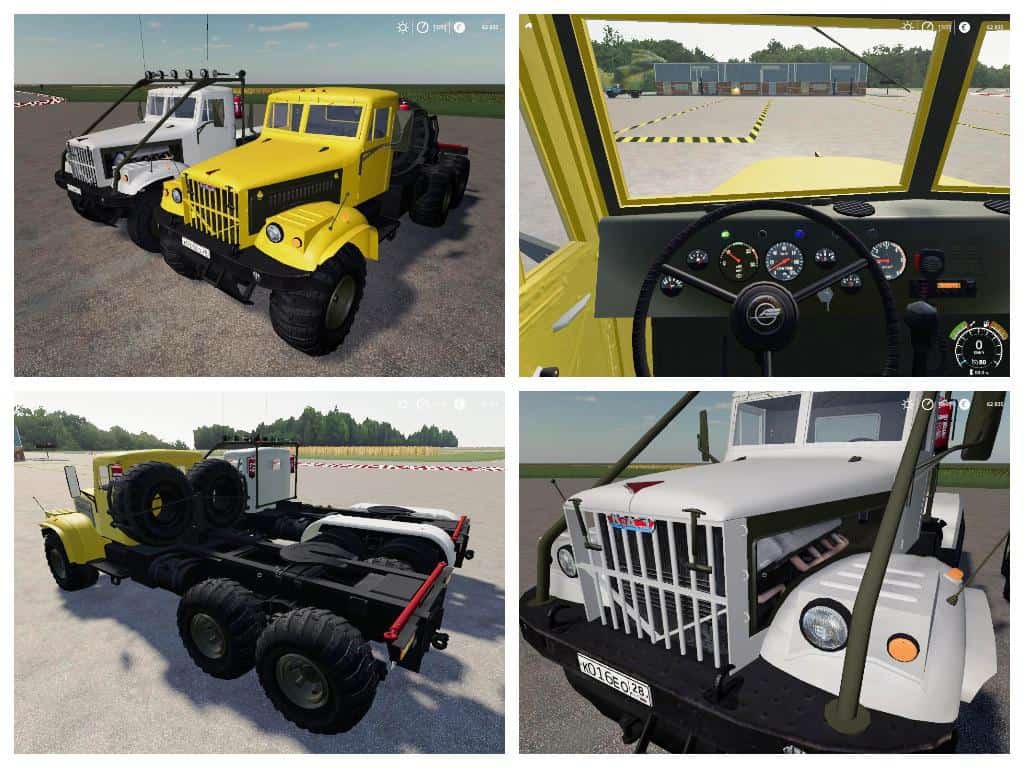 Truck engine power – 150 hp Max. speed – 80 km / h. The price is 15 723. The zilok has a 170 liters tank. Upon purchase, 4 body options are available (platform, 5,300, 7,600 and 11,200 liters) and two types of wheels. Tension belts. There is a dashboard animation, animation controls. Dynamic hoses. Working lighting, mirrors and dashboard. Soiled and washed.