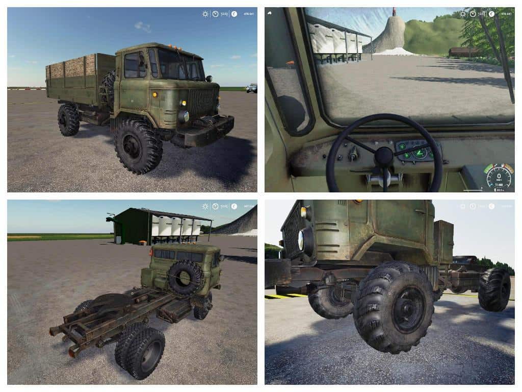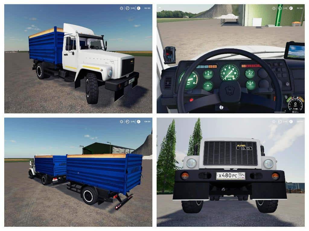 Truck engine power – 150 hp Max. speed – 80 km / h. The price is 15 723. The zilok has a 170 liters tank. Upon purchase, 4 body options are available (platform, 5,300, 7,600 and 11,200 liters) and two types of wheels. Tension belts. There is a dashboard animation, animation controls. Dynamic hoses. Working lighting, mirrors and dashboard. Soiled and washed.