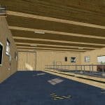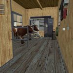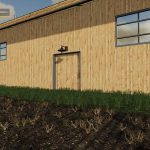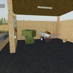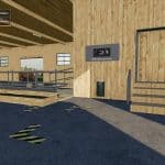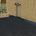 The cowshed has a milk chamber with door and sound a door for in the cowshed and one for the cowshed inside right next to it are the light switches also a small calf stand is obstructed and night light is over the doors the willow is also extended.